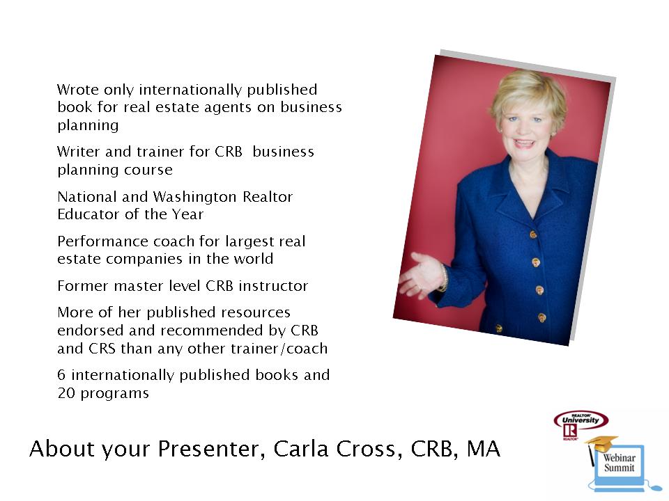 8. Create a slide at the beginning of your webinar that explains who you are and what you do, and where the attendee can go to get more information. a�?Playa�� this slide while the audience is logging in to the webinar. I alternate between my a�?home pagea�� slide and my bio slide. Then, when ita��s time to start my webinar, I just place the a�?homea�� page there again and start.